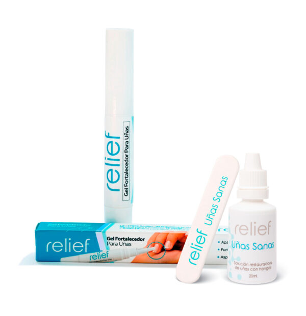 El Kit Uñas Sanas + Gel Fortalecedor Relief fue creado para las personas que buscan recuperar la salud de sus uñas y al mismo tiempo fortalecerlas para evitar futuros daños.